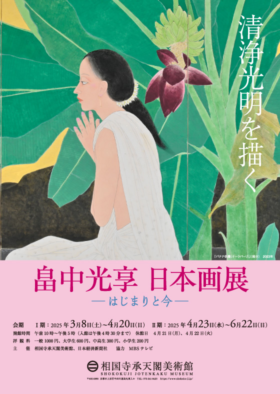 En la primera sala de exposiciones, se ha reconstruido la casa de té Sekkatei, que se alza en el recinto del Rokuonji y de la que se dice fue obra de Kanamori Sowa. A la segunda sala se ha trasladado una parte del mural de la Sala Daishoin del Rokuonji, una obra maestra de la pintura a la tinta de Ito Jakuchu designada como bien de importancia cultura. Esto permite admirar de cerca las obras en la plácida atmósfera de un templo antiguo. Esperamos ansiosos su visita.