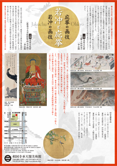 十八世紀の京では、多くの絵師が各々の画技をふるいました。なかでも、伊藤若冲と円山応挙は現在も愛好者の多い、人気の絵師です。本展覧会では、相国寺と伊藤若冲の関係を軸に、相国寺と相国寺塔頭所蔵の作品を公開いたします。